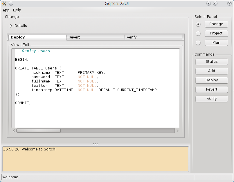 ps: There is a GUI for Sqitch – Simple SQL change management created by Stefan
